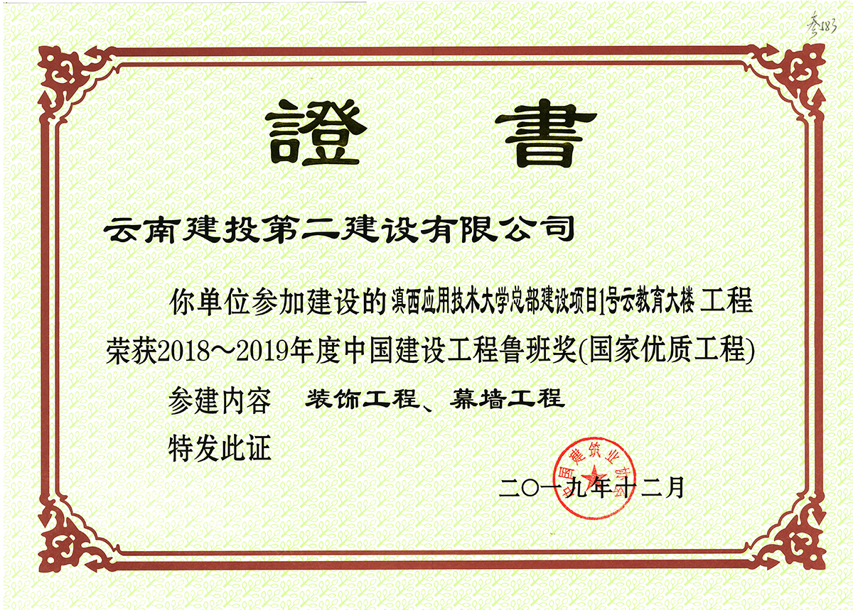 公司承建的項目先后獲得魯班獎 5 項,中國安裝之星 4 項,中國有色金屬工業(yè)優(yōu)質(zhì)工程 7 項,全國市政金杯示范獎 1 項,中國公路交通優(yōu)質(zhì)工程獎1項,國家級優(yōu)質(zhì)工程 10 項以及省級優(yōu)質(zhì)工程 90 余項。