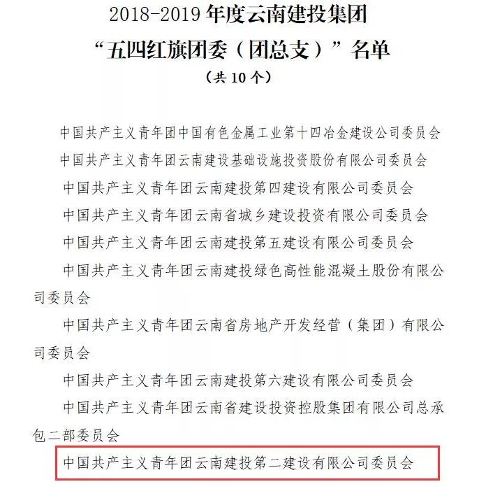 第十六直管部團(tuán)支部、第十九直管部團(tuán)支部獲評(píng)2018-2019 年度云南建投集團(tuán)“五四紅旗團(tuán)支部”。